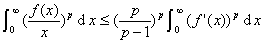 (8) 哈代不等式 设f(x)在[0,∞)上可微且上升,f '(x)连续,f(0)=0p>1,则