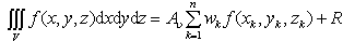式中对于不同的积分区域V选取不同的常数,是求积系数,R是余项.
