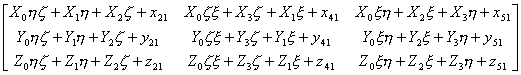 从上式看出变换矩阵各行关于ξ,η,ζ的二次项系数是相同的,记