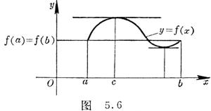 [洛尔定理如果(i)函数f (x)定义在闭区间[a,b]上而且是连续的,(ii)在开区间(a,b)内存在有限导数,(iii)在区间的两端点处函数值相等: f (a)= f (b).那末在ab之间至少存在一点c,使=0.即曲线y= f (x)在点(c, f (c))处的切线是水平的(5.6).