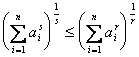 [闵可夫斯基不等式] 设ai, bi>0 (i=1, 2, L, n),又r>0, r¹1, 则