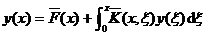 This is a special case of the Fr equation ( K ( x, ξ ) =0 when ξ > x ). Assume that F ( x ) is continuous on the interval [ a , b ] , K ( x, ξ ) is continuous on the square k 0 ( a ≤ x ≤ b, a ≤ ξ ≤ b ) , and when ( ξ > x ),