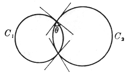 The intersection angle of two circles is the angle between their two tangents at the intersection