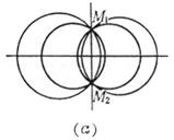 ( a ) If C 1 and C 2 intersect at two points M 1 , M 2 , then all circles in the bundle pass through the two intersection points M 1 , M 2 , and their root axis is their common chord. At this time circular bundle is called Coaxial circle system ( Fig. ( a )).