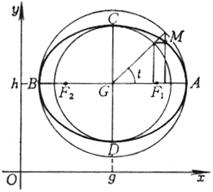 ( parametric equation, t is the angle between the radius of the concentric circle ( radius a , b ) corresponding to point M and the positive direction of the x -axis )