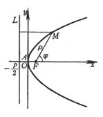 ( Polar coordinate equation, the pole is located at the focus F , the polar axis coincides with the axis of the parabola, and faces away from the vertex )