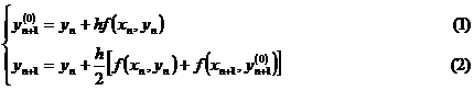 In this method, formula (1) uses the broken line method to provide the initial value, which is called the forecast formula . The formula (2) uses the trapezoidal method to give a more accurate value, which is called the correction formula . Collectively, it is called the forecast correction formula .