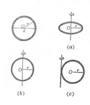 周长 重心 G与圆心O重合 转动惯量 (a)转轴通过圆心,且垂直于圆所在平面(图(a)) (b)转轴与圆圈的直径重合(图(b)) (c)转轴为圆圈的一条切线(图(c )) 面积 重心 G与圆心O重合 转动惯量 (a)转轴通过圆心,且垂直于圆所在平面(图(a)) (b)转轴与圆的直径重合(图(b)) (c)转轴为圆的某直径平行,其距离为h(图(c )) |