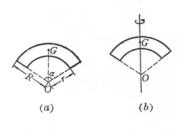 面积 重心 转动惯量 (a)转轴与GO重合(图(a)) (b)转轴通过G点,且平行于直径AB(图(b)) 弧长 面积 重心 转动惯量 (a)转轴在图形平面上通过G点,且垂直于GO(图(a))