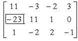 (1)2 行第1列的元素-23是主元素,用□框起来,并用矩阵表示成