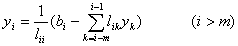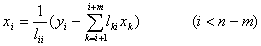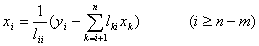 (1) 计算l ij.为了节省存储单元,充分利用矩阵的对称和带型特点,只需存储对角线和对角线下的带中元素,这时可以改变aij的下标,令