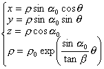 [圆锥螺旋线] 与一圆锥面母线的交角为定角的曲线称为圆锥螺旋线(图7.20),其方程为