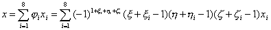 [型函数]    对于单位立方体,利用节点的对称性得出型函数为
