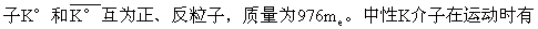 012)倍,即都是玻色子。介子都不能稳定存在,经历一定平均寿命后即转变为别种基本粒子。有的介子是荷电的,也有中性的。例如π介子有三种,π+和π-质量为电子的273.3倍,电荷相反,互为正、反粒子,而π°是中性的,质量为电子的264.3倍,其反粒子就是它身自。荷电K介子K+K-互为正、反粒子,质量为966.7me;中性K
