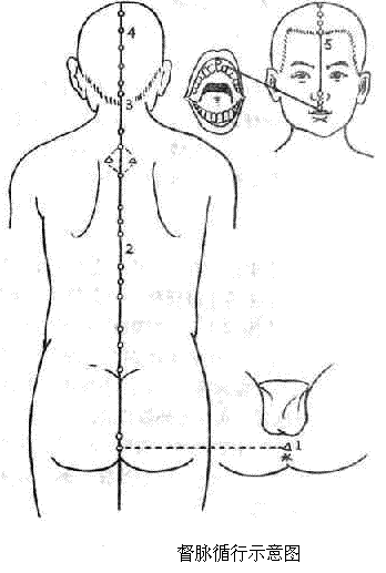 1.经脉循行:起于小腹内,下出于会阴部,向后行于脊柱的内部,上达项后风府,进入脑内,上行巅顶,沿前额下行鼻柱。