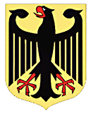 为盾徽。在金黄色的盾面上,有一只红爪红嘴、双翼展开的黑鹰。黑鹰象征着力量和勇气。