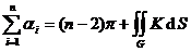 [高涅-波恩涅公式] 设G为曲面S上一个单连通区域,G的边界C是一条逐段光滑并无自交点的闭曲线,其运行的方向是使G总是在它的左侧.