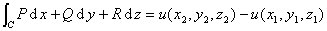 [全微分的情形] 若函数P=P(x,y,z),Q=Q(x,y,z),R=R(x,y,z)在区域V中的任一条光滑曲线C上连续,并且