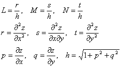 式中EFG为曲面的第一基本量,LMN为曲面的第二基本量。