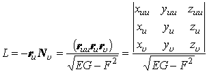 式中偏导数等在点取值,EFG为第一基本量,N为曲面在点M的法线单位矢量。