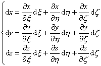 )空间的一个区域 一对一地连续映射为(x,y,z)空间的一个区域D,并假定f,g,h都有连续偏导数,因为对应是一对一的,所以有