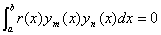 对应于不同特征值l ml n的两个特征函数ym(x)yn(x)[a,b]上关于权函数r(x)是正交的,即