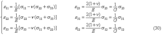 从(30)求逆得出应力与应变之间的关系式