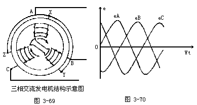 C大小相等,但方向相反。所以这三个电动势之和应为零。但如果三相中有一相被接反,例如C相反了,则由图3-77可知,这时闭合回路内的总电动势不仅不等于零,而且等于C相电动势的两倍。所以三相电源作三角形接法时,绝不容许接错。星形接法比起三角形接法来具有如下的优点:星形接法时,发电机绕组的电压可以比三角形接法的低,结构上易于绝缘。例如同样输出380伏特的电压,星形接法时,绕组电压是220伏特,三角形接法的绕组电压则为380伏特。再有,采用星形接法时,可引出中性线,构成三相四线制供电系统,对用户可提供两种不同的电压,以适应不同的需要。但是三角形接法的绕组电流较小,因此绕组的导线可以细一些。这一点是星形接法所不及的。