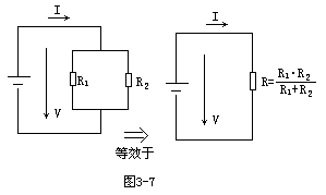 【电容器的并联】如图3-4所示为两个电容器并联,其中U表示两端A与B之间的电压(绝对值),q表示充电时流入电容器的总电量。