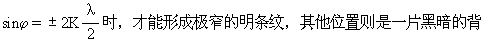 时,由各个狭缝所射出的光波都将各自地由于干涉而抵消,形成暗条纹。当然也就谈不上缝与缝之间的干涉作用,在这里即使符合明干涉条纹条件的也没有明条纹出现。由此可见在光栅衍射中,仅当j角满足(a+b)