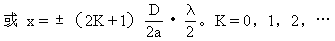 这里K=0相应于在O点处的中央明条纹。K=1,K=2,…等等相应的明条纹分别称为第一级、第二级、…明条纹。如果P点为暗点,按干涉条件,有