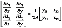 Since P is on the plane , there are only two independent coordinate variables , which are assumed to be x and y ; similarly , there are only two independent area coordinates , which are assumed to be taken . From the above two equations can be obtained![]()