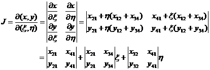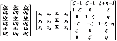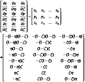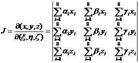 2° In the element analysis, the differential and integral operations of ( x , y , z ) are usually carried out by using local coordinates , which requires the use of transformation matrix and Jacobian formula J . Except for the hexahedral element , its expression is relatively simple . If the shape of the hexahedron is simple , for example, a series of regular hexahedrons parallel to the rectangular coordinates are used as the unit , then the coordinate transformation is degenerated to linear, and the transformation matrix is also very simple.