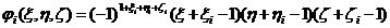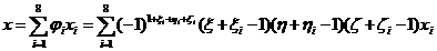[ Three-way distance coordinates ] Let the vertices of the hexahedron be ( i = 1, 2, … , 8 ) ( Figure 19.5 ) . Using bidirectional distance coordinates , first transform the quadrilateral to a unit square ( 0 ≤ ξ ≤ 1 , 0 ≤ η ≤ 1 ) on the coordinate plane ζ = 0 of the local coordinate system ( ξ , η , ζ ) ; then define the distance on the line segment coordinates , and take it as (1- ζ , ζ ), where ζ is 0 and 1 respectively![]()
