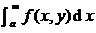 [ Integration over parameters ]   If the function f ( x , y ) is continuous in the region R ( ax < , y 1 < y < y 2 ) and converges uniformly in the interval ( y 1 , y 2 ) , but