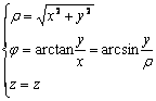 r , j are the polar coordinates of the projection of point M on the Oxy plane, and z is the distance from point M to the Oxy plane . Here 0 £ r < ¥ - ¥ < j < ¥ - ¥ < z < ¥ |